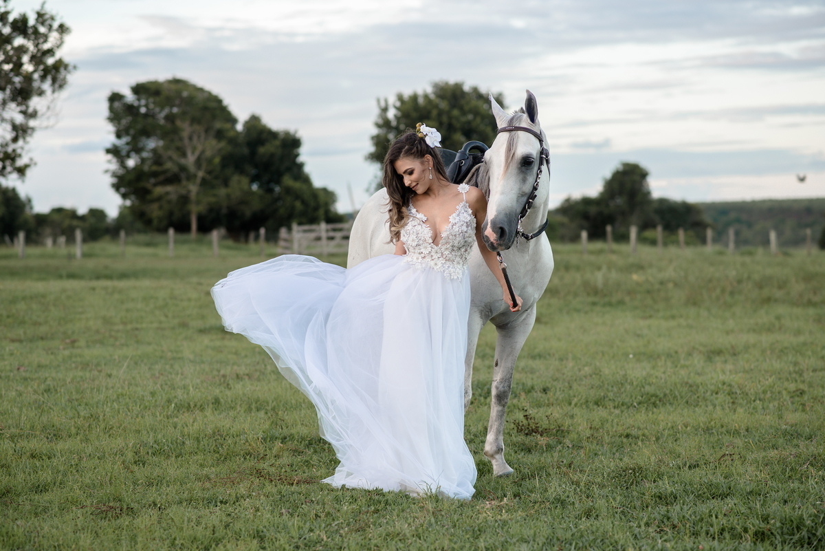 Pensando nisso, em parceria com a maquiadora Renata Eccher, decidimos criar um ensaio diferente para inspirar todas as noivas que se identificam com o campo.O resultado não poderia ser outro, ficou encantador e autentico, uma opção perfeita para gerar resultados lúdico, romântico e delicado.